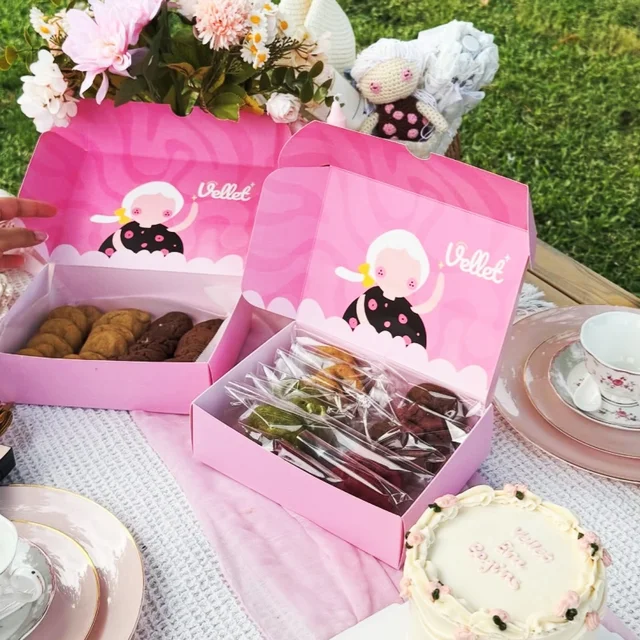 Custom logo paper cup cake boxes cajas brownie box disposable chunky cookies chocolate wrapping paper container food bucket tubs